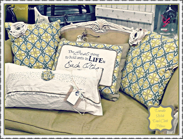 So, when I was getting ready for my debut at The Changing Season last week and I had that settee to display, I really, really, REALLY wanted to make some pillows for it.